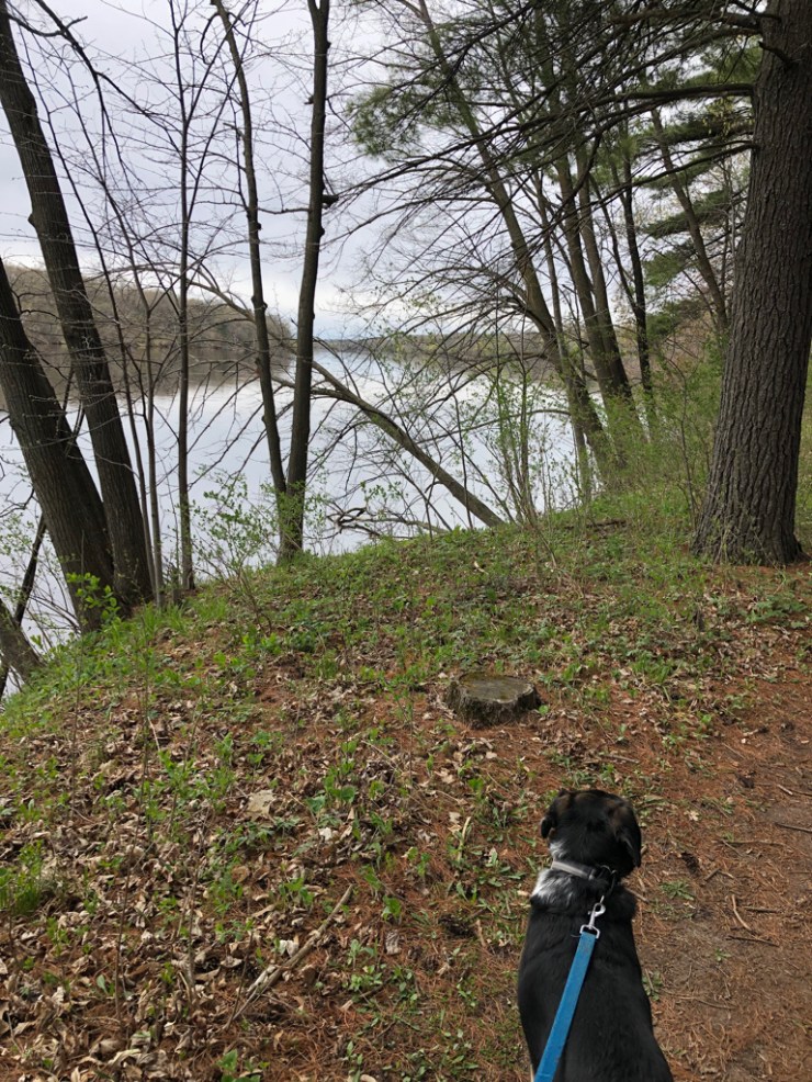 We headed out to complete the Hiking Club Trail. It turned into a 3.6 mile hike because of the walk to and from the official trail. Being early spring there were sections of swampy mud to go through. Both of us had mud on the cuffs of our pants and Crosby had muddy paws.