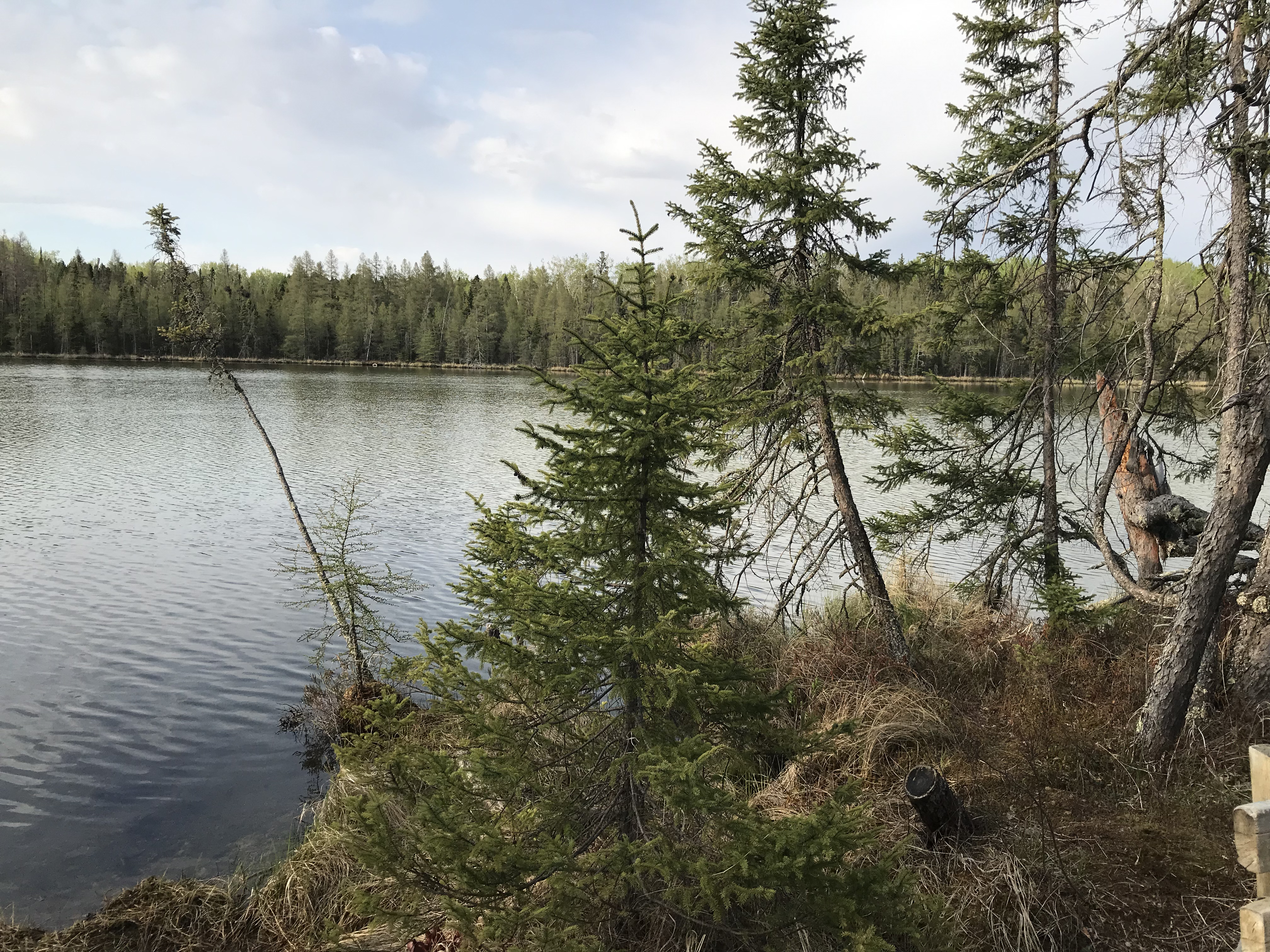 The next day we woke very late — 8:15 AM. Evidently Crosby was also tired because he didn’t try to wake us earlier. Lynn started a morning campfire. This was the first morning that it felt warm enough to even think of having a fire and sitting outside. Pancakes and Canadian bacon would come at a leisurely pace a little later.