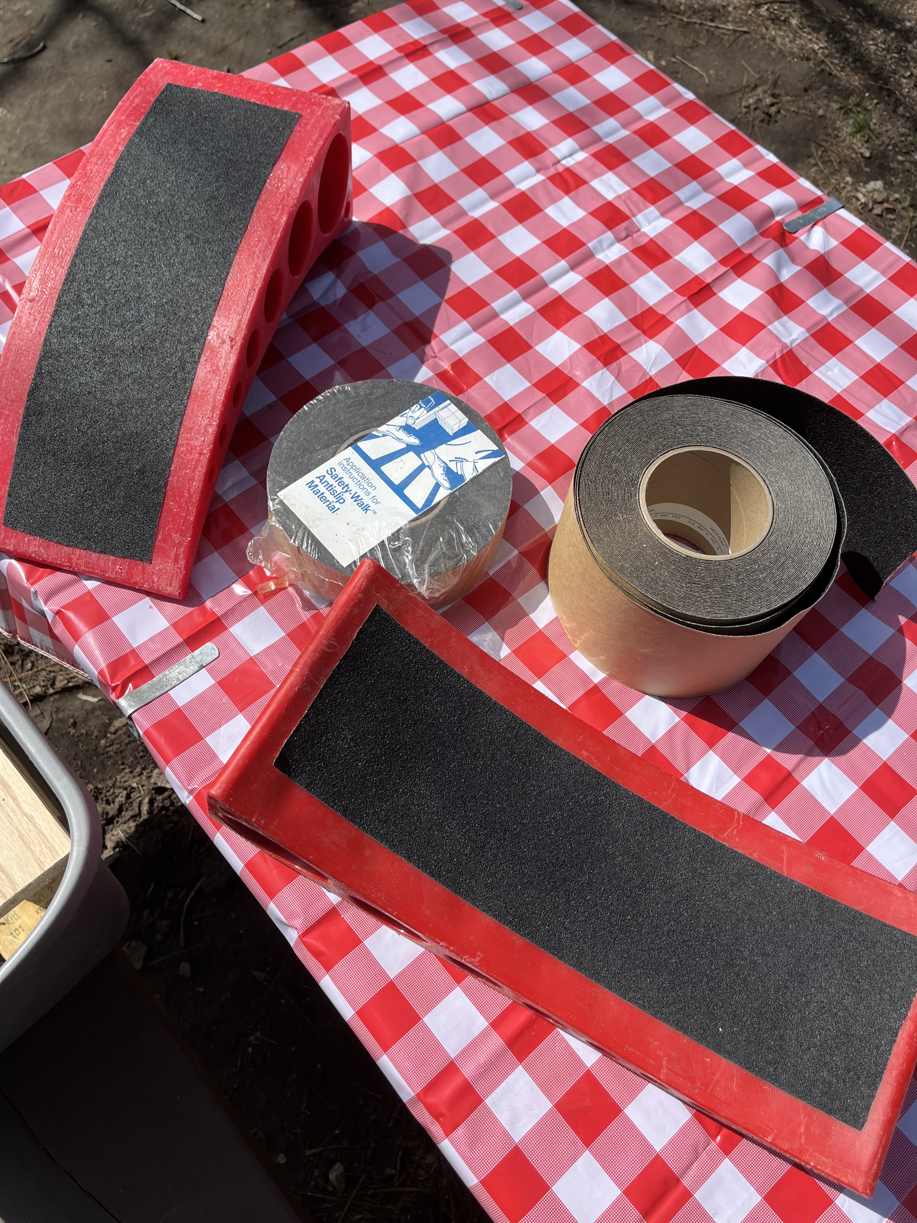I modified the Anderson levelers with 3M™ Safety-Walk™ tape. This should give them more traction. I had meant to do this before we departed home, but threw the roll of tape in the truck to take care of it during camp downtime, if we didn’t use the levelers. I knew the site was level and unlikely to need the Anderson levelers.